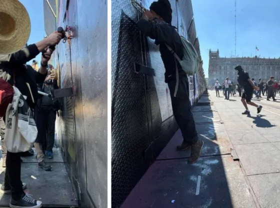 A group of protesters, who started from the Angel of Independence, arrived at the Zócalo and began a siege against the structure that protects the National Palace to try to tear down the fences, throwing objects, such as stones and rockets.