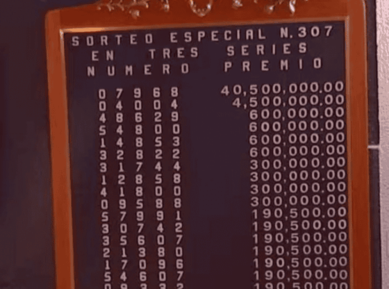 The celebration of the Special Draw 307 was broadcast live through the official channel of the National Lottery, where it was confirmed that number 07968 was the jackpot winner.