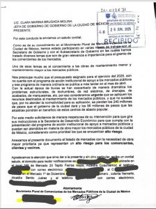 One of these letters was sent since June to the capital government, where the Plural Movement of Merchants, indicated “the budget assigned for the fiscal year 2025 does not yet have the institutional action program to support public markets and that program is normally published no later than April.” In the same document, the tenants warned of the loss of public money for not complying with the regulations.