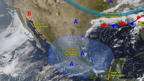 The arctic air mass driving the front will cause a cold to frigid environment with frost in the mountainous areas of Chihuahua, Durango, Zacatecas and the State of Mexico. The fall of snow or sleet on the Pico de Orizaba and Cofre de Perote volcanoes is not ruled out. In contrast, the entry of moisture from the Pacific Ocean and the Caribbean will generate scattered rains in western states and the Yucatan Peninsula.