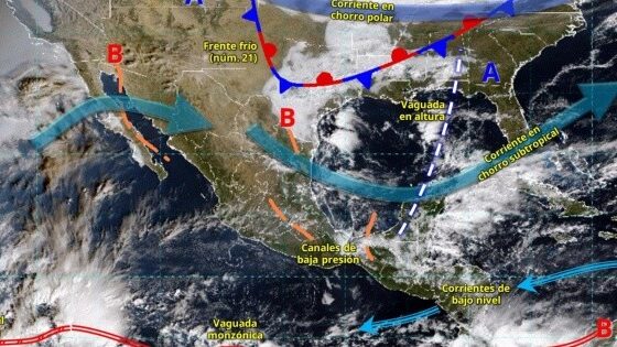 The associated polar air mass will cause a significant drop in temperatures, with a cold to very cold environment during the early morning in the north, northeast and center of Mexico, as well as frost in mountain areas. In contrast, high maximum temperatures will remain, of 35 to 40 degrees Celsius, in Pacific entities such as Sinaloa, Jalisco, Michoacán, Guerrero and Oaxaca.