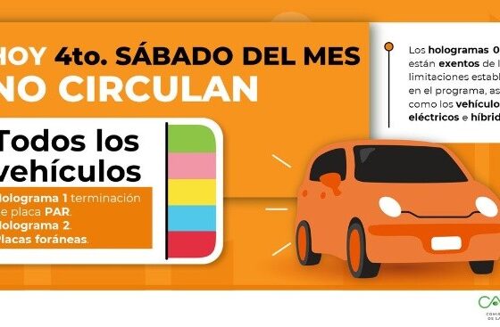 The Hoy No Circula program, in force in Mexico City and in surrounding municipalities of the State of Mexico as a measure to reduce the emission of pollutants, is applied this November 22 in its modality on the fourth Saturday of the month: