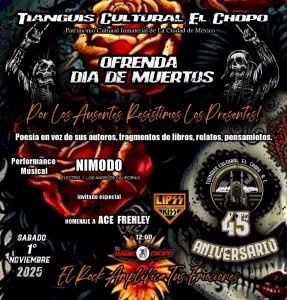 CDMX. This Saturday, November 1, The Chopo Cultural MarketIntangible Cultural Heritage of CDMX, will remember rockers, journalists, writers, musicians and poplars who have already died, like every year, the cultural commission is in charge of organizing, together with the more than 200 associates, the altar in which those who went ahead along the way are remembered with love, admiration and respect.