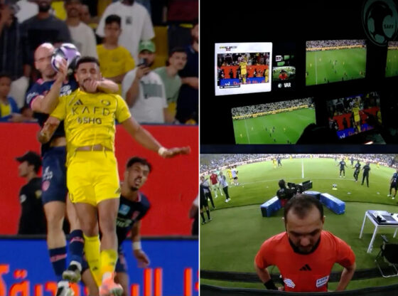 The referee follows the shot via the video technology screen 🎥👀
