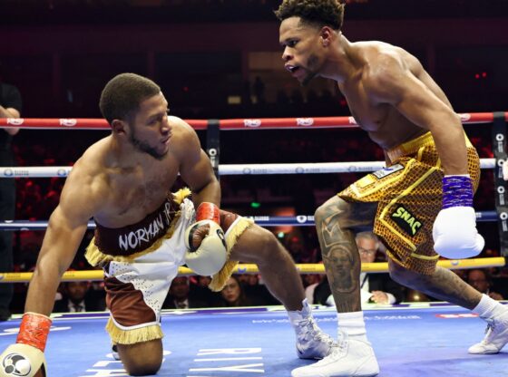 Known more for his technique than his punching, Haney floored Norman with a hard right hand. He then used his boxing skills to keep Norman at bay, remain undefeated (33-0) and hand Norman (28-1) his first loss as a professional.