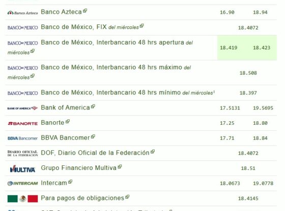 When purchasing, the lowest price is 16.90 pesos per dollar offered by Banco Azteca, and the highest is: 18.2478 pesos per dollar offered by Banco BX+.