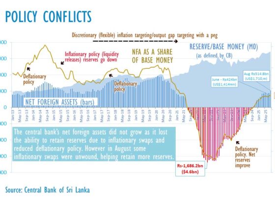 Sri Lanka’s central bank’s ability to collect reserves reduced in 2025 during the current portion of the International Monetary Fund program after a requirement to sell down its domestic assets was removed, analysts have pointed out.