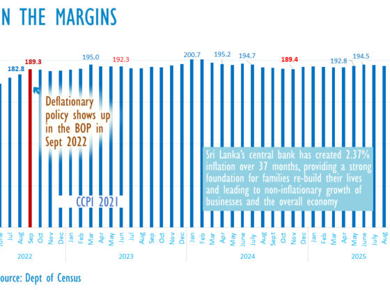 ECONOMYNEXT – Sri Lanka’s consumer prices rose 2.1 percent in the 12 months to October 2025, but prices have risen only 2.4 percent in the 37 months since the central bank’s deflationary policy started to show in the balance of payments.