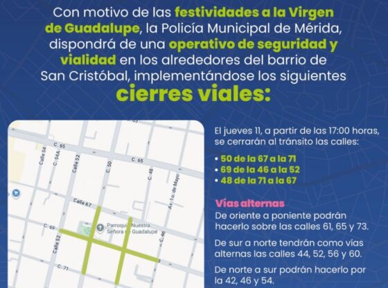 The City Council of Mérida prepared a special security and road operation for the festivities Virgin of Guadalupe in the San Cristóbal neighborhood, with coordinated surveillance between the Municipal Police and the SSP, in addition to a care module.