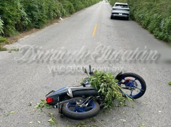 The events were recorded this Sunday afternoon in the Motul–Telchac Pueblo highwayat the height of Komchen MartinezMotul, when the motorcyclist lost control and traveled several meters along the bank. The weeds caused him to skid and end up on the pavement.