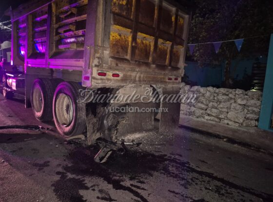 TIZIMÍN.- A strong impact was heard in the early hours of this Thursday in the 8 Calles neighborhood in Tizimínwhen a gray truck crashed into a dump truck parked on 33A Street at 48th and 50th.
