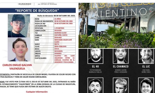 CULIACAN.- More than one month after the disappearance of Carlos Emilio “N”, 20 years old, authorities of Sinaloa they announced that The young man was captured by security cameras when I was walking out of the Terraza Valentino bar, in Mazatlán, with two menthe early morning of Sunday, October 5, the date he disappeared.