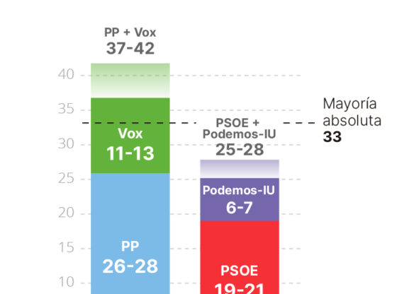 Desde el punto de vista de la aritmética parlamentaria, el bloque conservador parte con ventaja. La proyección de escaños sitúa al PP entre 26 y 28 diputados y a Vox entre 11 y 13, una suma que superaría con holgura los 33 escaños necesarios para la mayoría absoluta. Esa combinación convierte al pacto PP-Vox en la opción más estable numéricamente, pero también en la más condicionada políticamente, ya que el crecimiento de Vox le otorga una capacidad de influencia inédita en la comunidad.